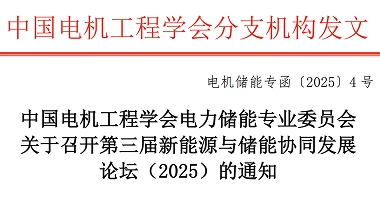 中国电机工程学会电力储能专业委员会关于召开第三届新能源与储能协同发展论坛(2025)的通知